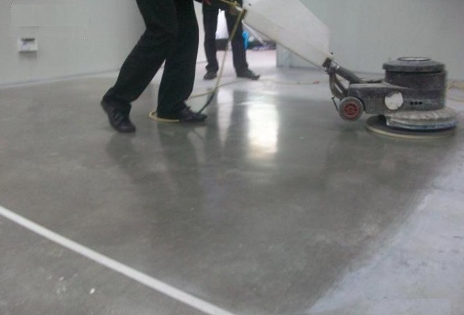 1.用300目环氧树脂专业打磨机进行全面打磨(可以用清水进行湿处理后打磨),露出混凝土清洁新鲜的表面。 目的:清除原有地面垃圾、灰尘、浮浆,打开原有地面表面更多的毛细孔,以利混凝土密封固化剂更多、更好地渗入地面 |